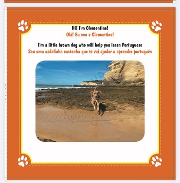 Clementine teaches children some basic Portuguese vocabulary using photographs from the dog’s life.